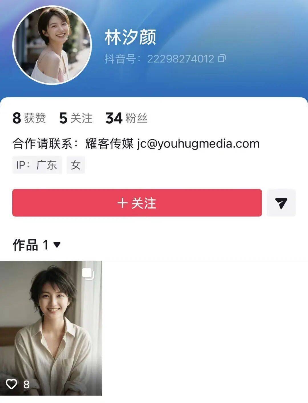 据介绍,耀客推出的两名虚拟艺人秦凌岳(男)与林汐颜(女),定位为“赛博演员”。目前,两人已在社交媒体抖音、小红书开通账号,宣称将分享“日常”并与网友互动,强调“不留电子眼泪”。